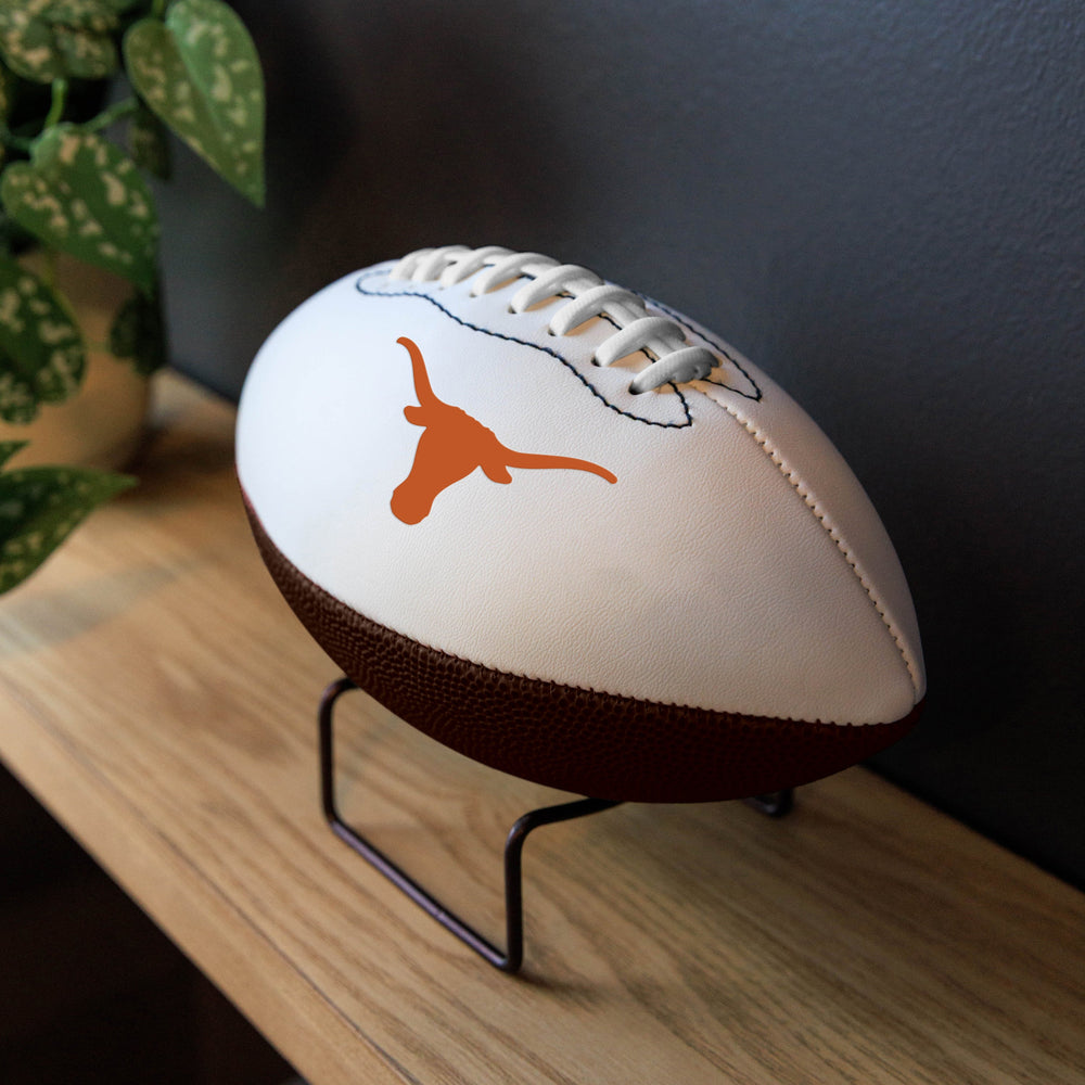 This officially licensed, Mini Autograph Football is a great gift for sports fans and collectors, perfect for display at home or at the office. The ball features two brown pebble grain panels, as well as two smooth white panels for signatures from your favorite players. The top smooth panel has a large team logo. This ball is a great gift or keepsake, perfect for presenting at awards ceremonies, or as a season-end gift for a coach or graduating senior. Best if signed with a permanent marker and given time to dry to prevent smearing.