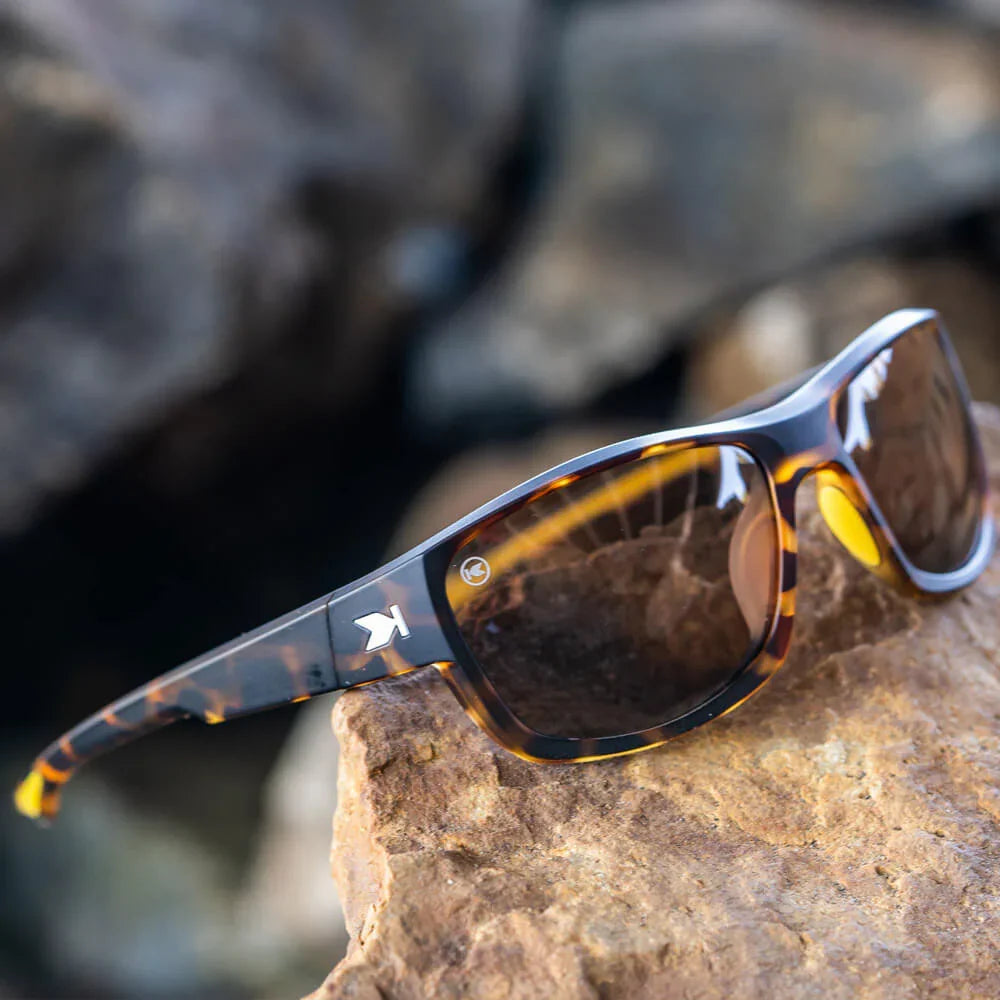 Turn heads from the shore to the open water with Tigers Eye High Stakes—where bold style meets unstoppable performance. The matte tortoise-print frames add a fashion-forward edge, while vibrant yellow rubberized nose pads and ear grips bring a pop of contrast and all-day comfort. Polarized amber lenses with an anti-saltwater coating keep your vision sharp, no matter the conditions. Whether you're riding the waves or just making waves, these shades ensure you do it in style.