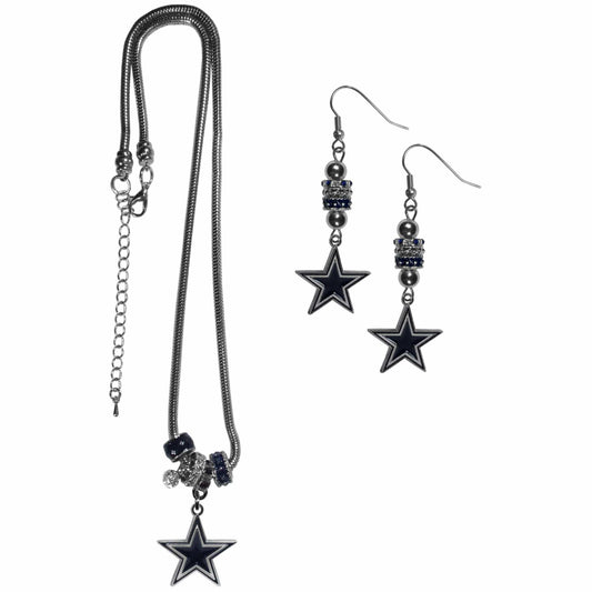 Conjunto de collar y aretes con cuentas europeas de los Dallas Cowboys