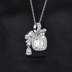 1.5 Carat Moissanite 925 Sterling Silver Bowknot Pendant Necklace