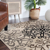 This 5' square tan gray and black square floral medallion stain resistant area rug, is a great way to add warmth to a room. This geometric square shaped rug features a medallion pattern in tan gray and black that combines a good looking print with a unique and updated shape. The mix of shape, color, and design gives this rug refreshing visual interest. This superior Turkish rug represents the highest quality and is built to last. Ideal for spaces with kids and pets, this rug is stain resistant to help repel stains and spilled liquids. Place this area rug against a hardwood or tile floor and it will enliven your living space with style and sophistication. 0.31" H x 60" W x 60" D