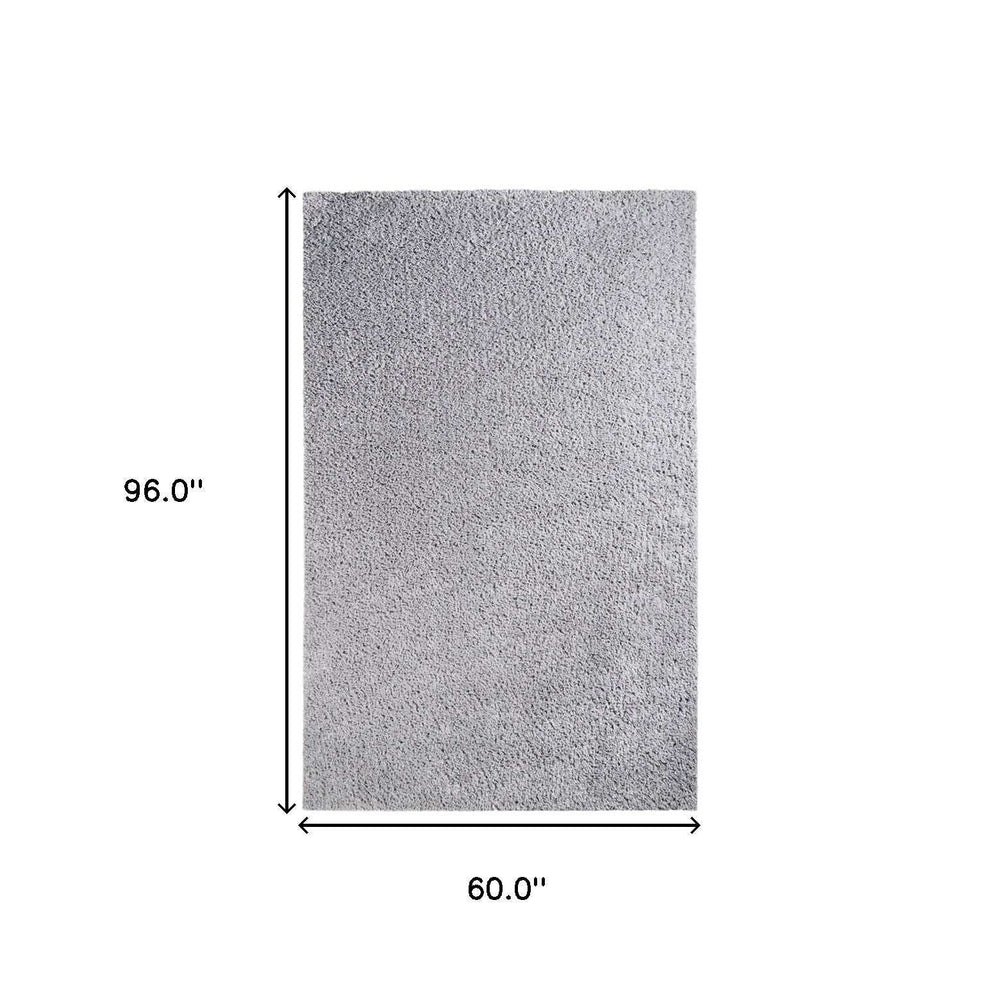 Add some artistry to your room with this 5' x 8' silver shag stain resistant area rug. This rectangle shaped rug flaunts a silver color that will be a great way to accent your space. Solid colors are versatile and will blend with any existing decor style. Ideal for spaces with kids and pets, this rug is stain resistant to help repel stains and spilled liquids. The retro shag construction of this luxurious rug will provide a soft and comfortable barrier to color tile and hardwood floors. Place this area rug against a hardwood or tile floor and it will enliven your living space with style and sophistication. 1.69" H x 60" W x 96" D