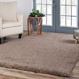 Add some artistry to your room with this 5' x 8' taupe shag stain resistant area rug. This rectangle shaped rug flaunts a taupe color that will be a great way to accent your space. Solid colors are versatile and will blend with any existing decor style. Ideal for spaces with kids and pets, this rug is stain resistant to help repel stains and spilled liquids. The retro shag construction of this luxurious rug will provide a soft and comfortable barrier to color tile and hardwood floors. Area Rugs help to give warmth and sense of home to your space. 1.69" H x 60" W x 96" D