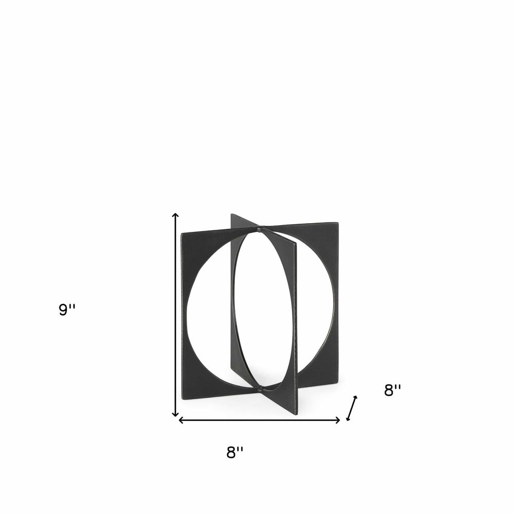 The perfect contemporary design piece, this Charcoal Gray Metal Circle Square Sculpture will elevate any corner of your home. This decor piece is made from solid metal and features two small square shapes intersecting at one point at the top and one at the bottom. There are circular shapes cut into these square shapes which makes the look of this decor piece very light and airy. The color of this decor piece is in a charcoal gray color. You can use this decor piece anywhere in your home and it won't clash with the interior styles or colors you already have, owing to its minimal design and neutral coloway. 6" H x 5" W x 5" D