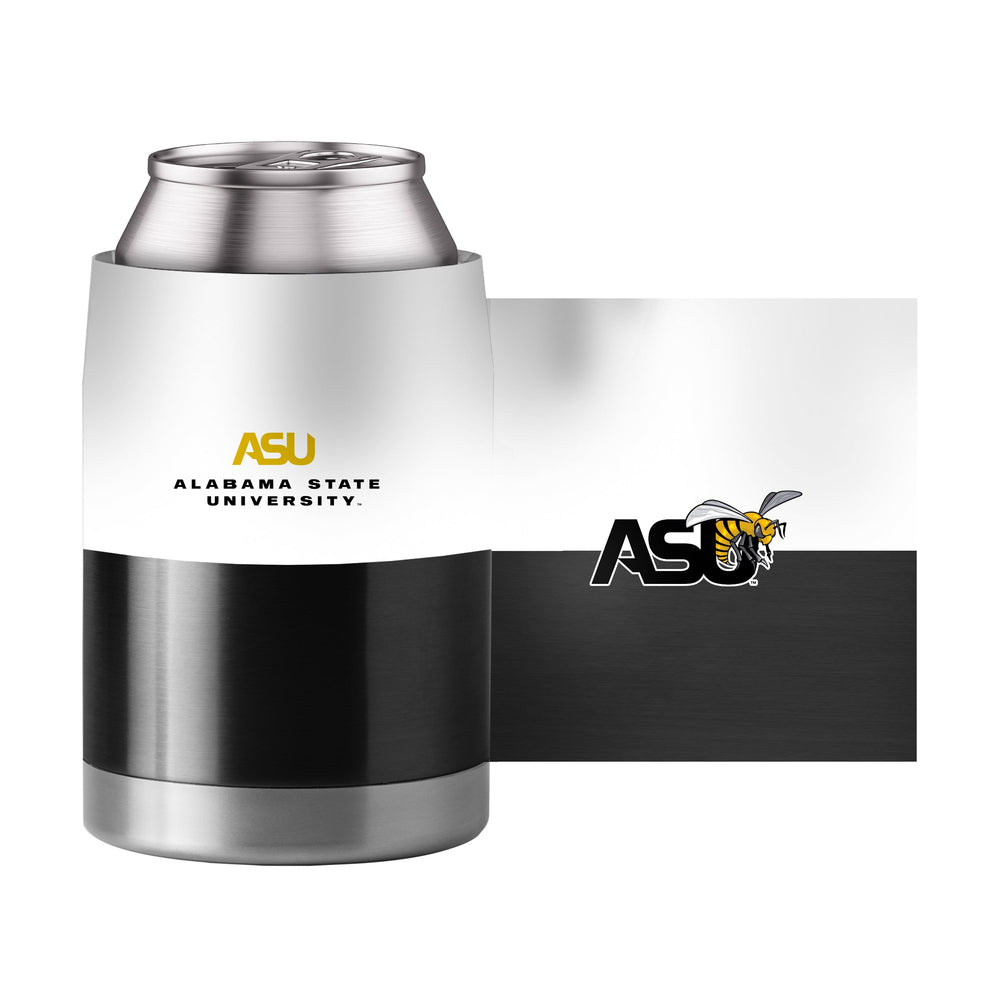 This unique 3-in-1 coolie is great at multi-tasking. Keeps standard 12 oz. cans and bottles cold for hours, but can also serve as a 15 oz. tumbler! In attached faux can, find two neoprene liners, one for bottles, one for cans, providing insulation without condensation.
