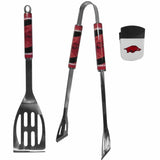 This stainless steel 2 pc BBQ grill set is a tailgater's best friend. The colorful and large team graphics on each of the barbecue tools let's everyone know you are a fan! The set in includes a spatula and tongs with the Arkansas Razorbacks proudly display on each tool. Whether you are grilling on your patio or tailgating with your friends this set is a party favorite. The 14 inch length makes these tools easy to pack for camping, travel to the big game or any outdoor event. Comes with an attractive clip magnet to hold memos, photos or appointment cards on the fridge or take it down keep use it to clip bags shut. The chip clip magnet features a large team logo. Officially licensed College product Licensee: Siskiyou Buckle 2 pc stainless steel grill tool set perfect for tailgate and outdoor parties or at your campsite These do not just look good the steel set is high quality and the tongs feature deep ridges for better grip while grilling Comes with a 2 inch wide clip magnet, with bottle opener on the back Any Arkansas Razorbacks fan would be proud to have this set
