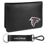 Ditch your bulky wallet! This super slim leather wallet is the perfect weekend companion and sports fan accessory. The compact design features 2 credit card slots on the front and one on the back and an inner middle pocket for cash. The front of the wallet has a crisp silk screened Atlanta Falcons logo expertly printed on the front corner. Comes with a stylish black strap key chain with clip to easily attach to belts, backpacks or purses.