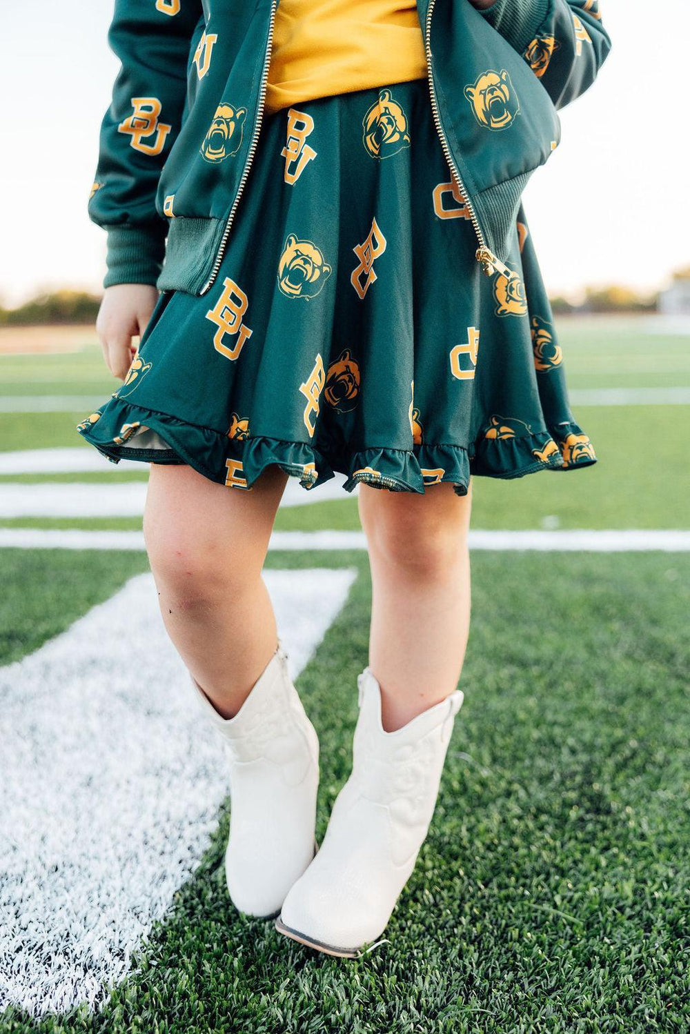 Let your little Bear show off her BU pride with this spirited twirl skort—perfect for game day, spirit day, or everyday play! This skort is made for young fans who love to cheer. Mix and match our Baylor University collection for a coordinated look with sisters, cousins, or BFFs!