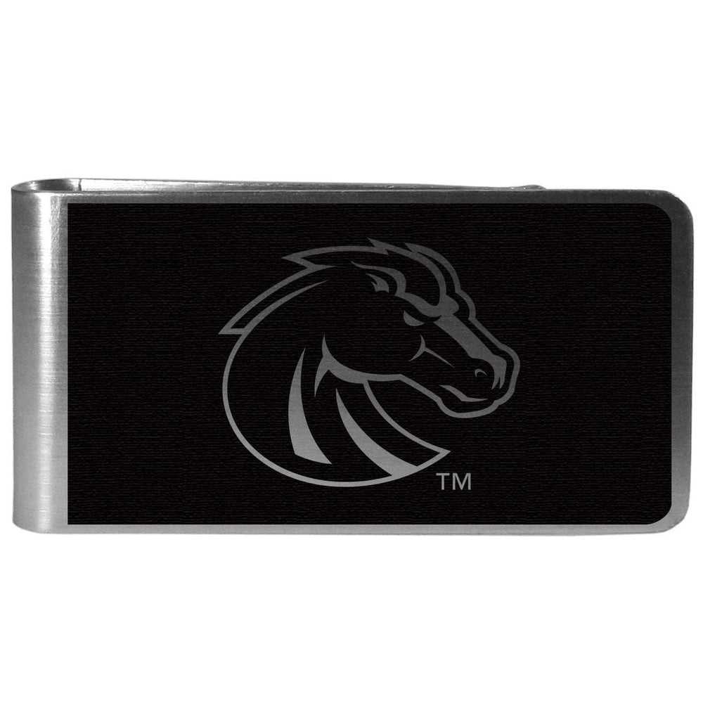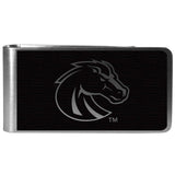 Our monochromatic steel money clips have a classic style and superior quality. The strong, steel clip has a black overlay of the Boise St. Broncos logo over the brushed metal finish creating a stylish men's fashion accessory that would make any fan proud.