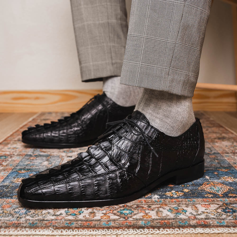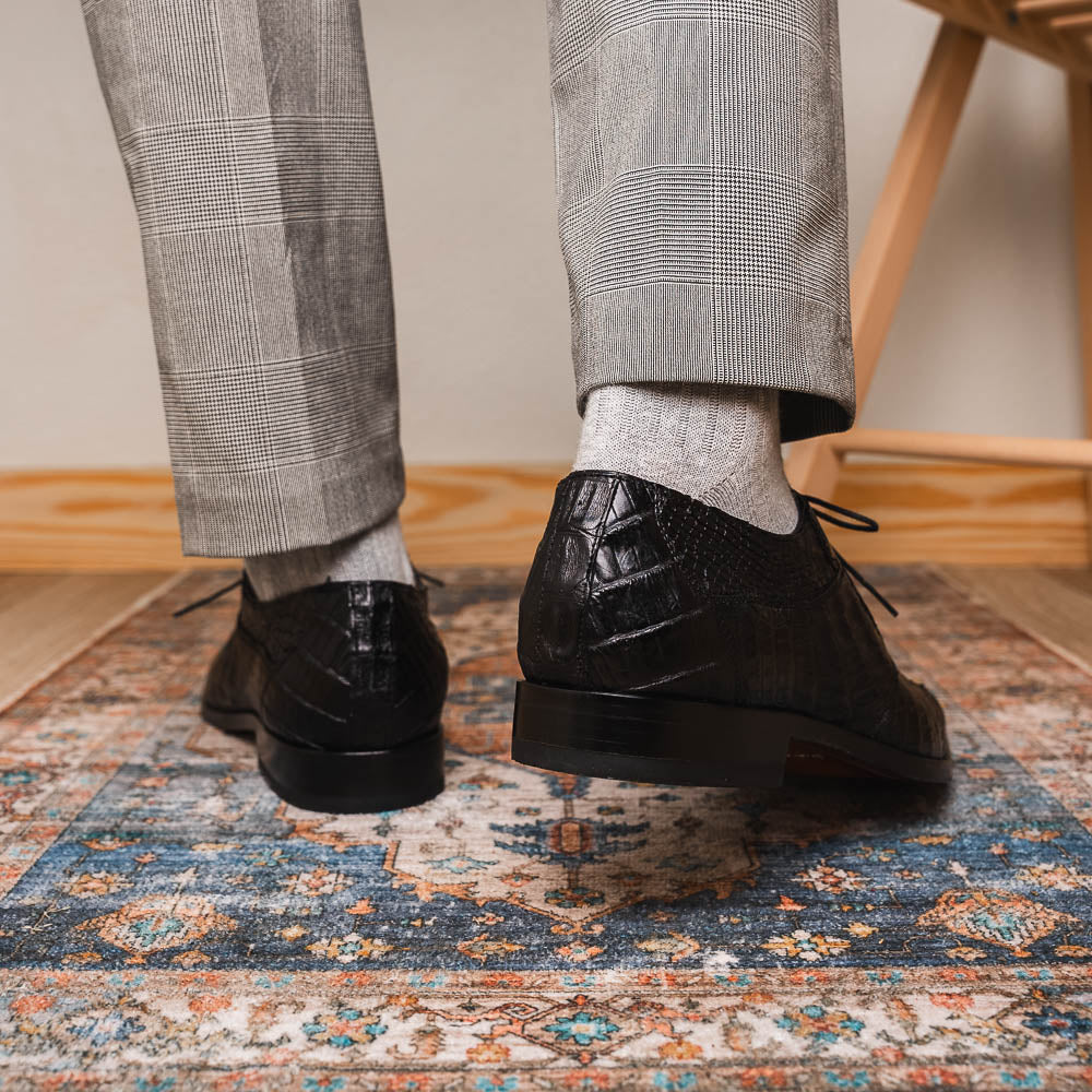 The CANCUN is our stunning genuine hornback caiman crocodile dress derby's featuring a 3D crocodile scale toe box, tasseled laces, and a polished hand finish that makes the crocodile texture pop. Dress these up with your favorite jeans or slacks for an out-of-this-world look.
