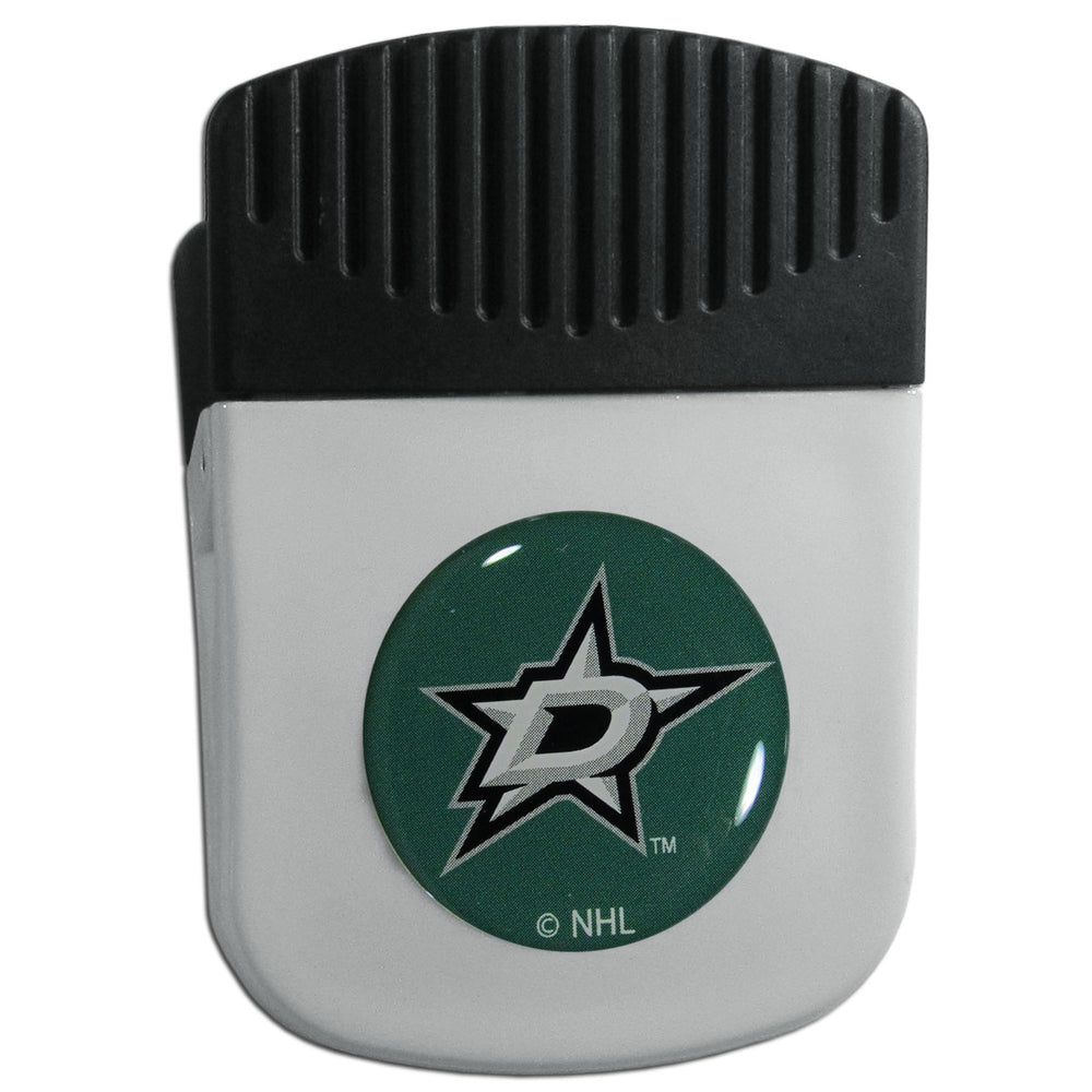 Use this attractive clip magnet to hold memos, photos or appointment cards on the fridge or take it down keep use it to clip bags shut. The magnet features a domed Dallas Stars™ logo.