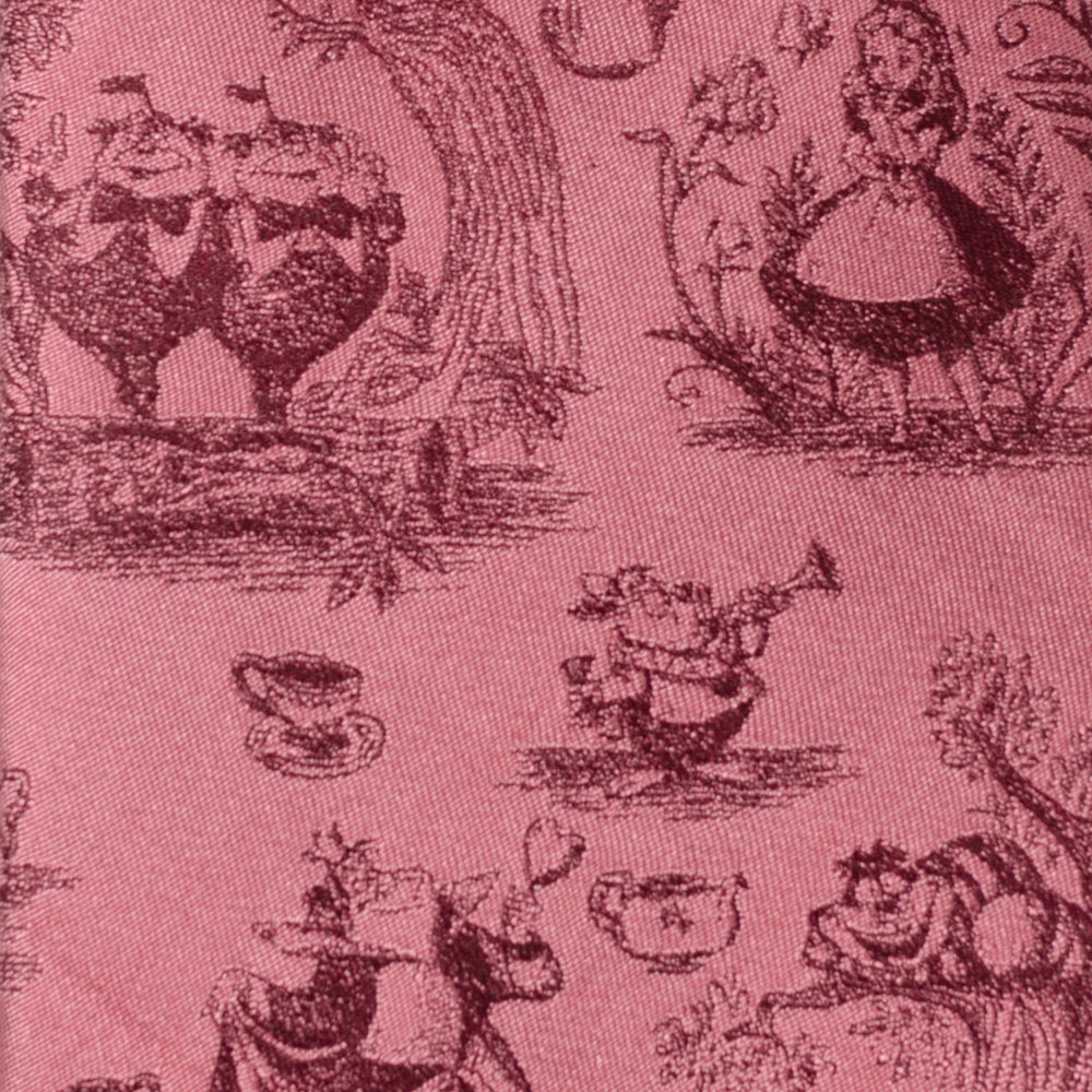 Beautifully woven scenes create the design on our tonal Alice in Wonderland Dusty Red Men's Tie. This detailed red tie features Alice, the Red Queen, the White Rabbit, and many more with floral and tea cup motifs to create the intricate pattern. Experience enchantment with our expertly crafted 100% Silk neck tie. It's built to last, infused with Disney magic, and ready to accompany you on whimsical adventures. Add a touch of whimsy to your journey with this durable, soft and intricately detailed necktie. Officially licensed by Disney.
