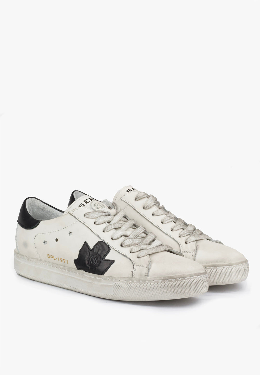 The SEPOL Ese-Fresh distressed men's sneaker is the sneaker your wardrobe's been waiting for. This isn't just another white leather sneaker; it's a statement piece. With its on-trend distressed finish, genuine leather construction, and bold black accents, the Ese-Fresh captures the vintage vibe that's dominating the fashion scene. Experience the perfect blend of retro style and modern comfort.