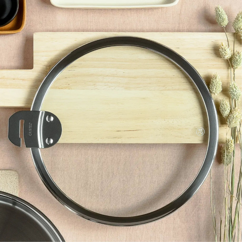 Flat glass lids made with tempered glass and stainless steel. Glass lid helps you monitor the food without removing it.