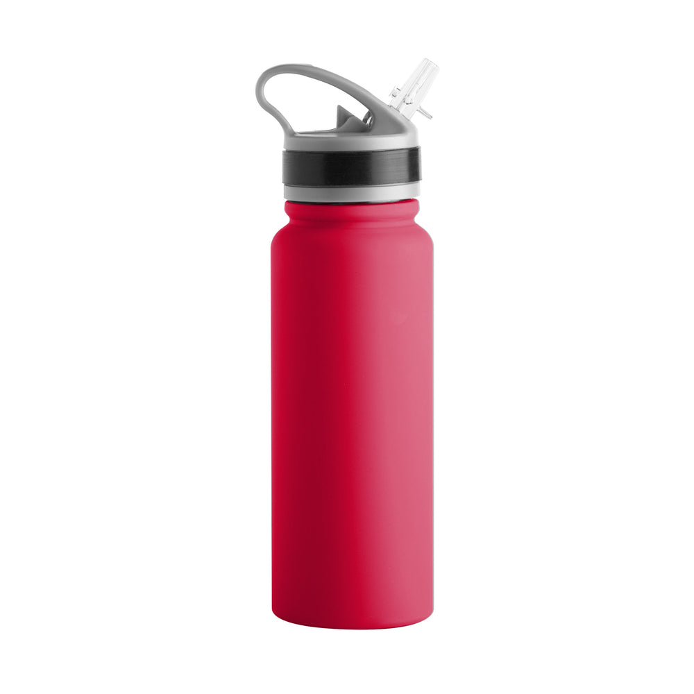 This Single-Wall Stainless Steel Bottle holds 25 oz., so it's sure to keep you hydrated all day long. Flip top lid with straw makes for easy sipping. Lid includes a carry handle which makes it easy to transport. Soft rubber exterior coating gives it a velvety feel. Made of high quality stainless steel that doesn't change the taste of your beverage.