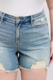 High rise washed fly stitch detail and destroy denim shorts are a trendy and edgy addition to your summer wardrobe. The high-rise waistline offers a flattering fit that sits comfortably at the natural waist. The washed denim finish gives the shorts a laid-back and casual look, perfect for creating cool and effortless outfits. The fly stitch detail and destructed elements add a touch of attitude and character to the shorts, making them a statement piece. These shorts can be styled in a variety of ways - pair them with a basic tee and sneakers for a casual and stylish look, or dress them up with a crop top and heels for a more daring ensemble. Overall, high-rise washed fly stitch detail and destroy denim shorts are a fashion-forward option for adding some edge to your summer style.