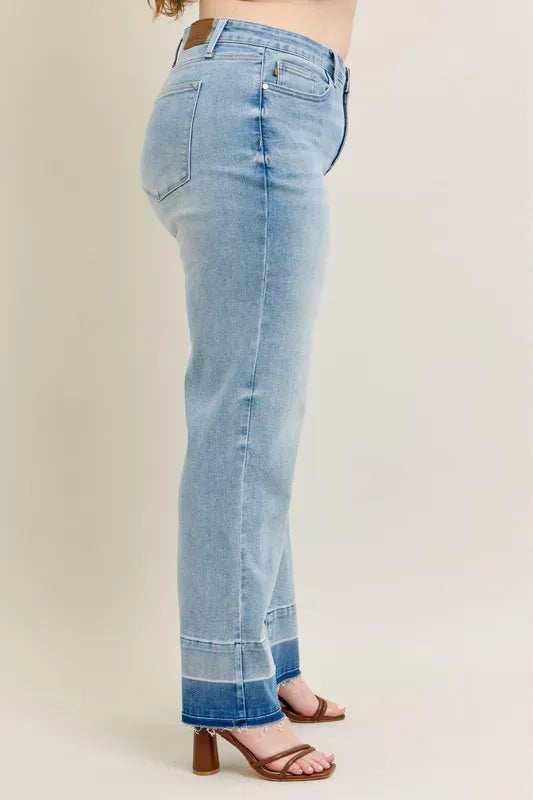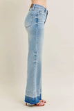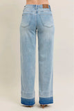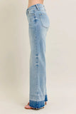 These contemporary wide-leg jeans feature a flattering high-rise silhouette crafted from premium stretch denim. The light wash finish offers versatile styling options while the distinctive released hem adds modern edge. The relaxed fit through hip and thigh creates a comfortable wearing experience. Made with quality denim fabric that provides excellent shape retention and durability. The contrast hem detail and raw edge finish create visual interest. Perfect for casual everyday wear with a fashion-forward twist.