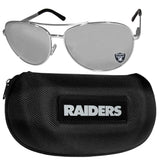Aviator sunglasses are truly an iconic retro fashion statement that never goes out-of-style. Our Las Vegas RaidersSteelers aviator sunglasses pair this classic look with your love of the game. The iridium coated lenses reduce glare while driving, boating, golfing and their 100% UVA/UVB rating provides you with the maximum UV protection for all your outdoor activities. A millennial favorite, these affordable designer frames are the perfect eyewear accessory for a sports fan that is looking for high-quality at an affordable price. The durable, flex hinged frames are tough enough for hiking and camping or if you prefer sun bathing by the pool or on the beach these shades will really stand the test of time. The sunglasses come with a sport case which has a large team logo on the lid that will make even the most die-hard fan proud!