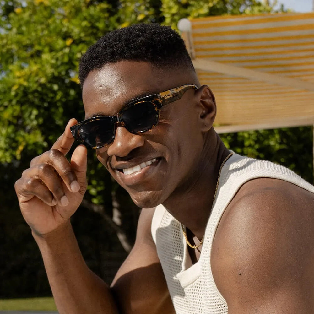 Your presence speaks for itself when you’ve got your Le Grand Amour Junipers on. These stylish sunglasses feature a full tortoise take on high caliber class thanks to thick arms and rounded fronts, so there’s no question who’s in charge. Polarized smoke gradient lenses only add to the attitude, plus resolute UV400 protection and impact resistance offer extra reassurance on any deluxe getaways. Top the whole thing off with glitzy gold detailing and all you need is a sassy one-liner to make your exit.