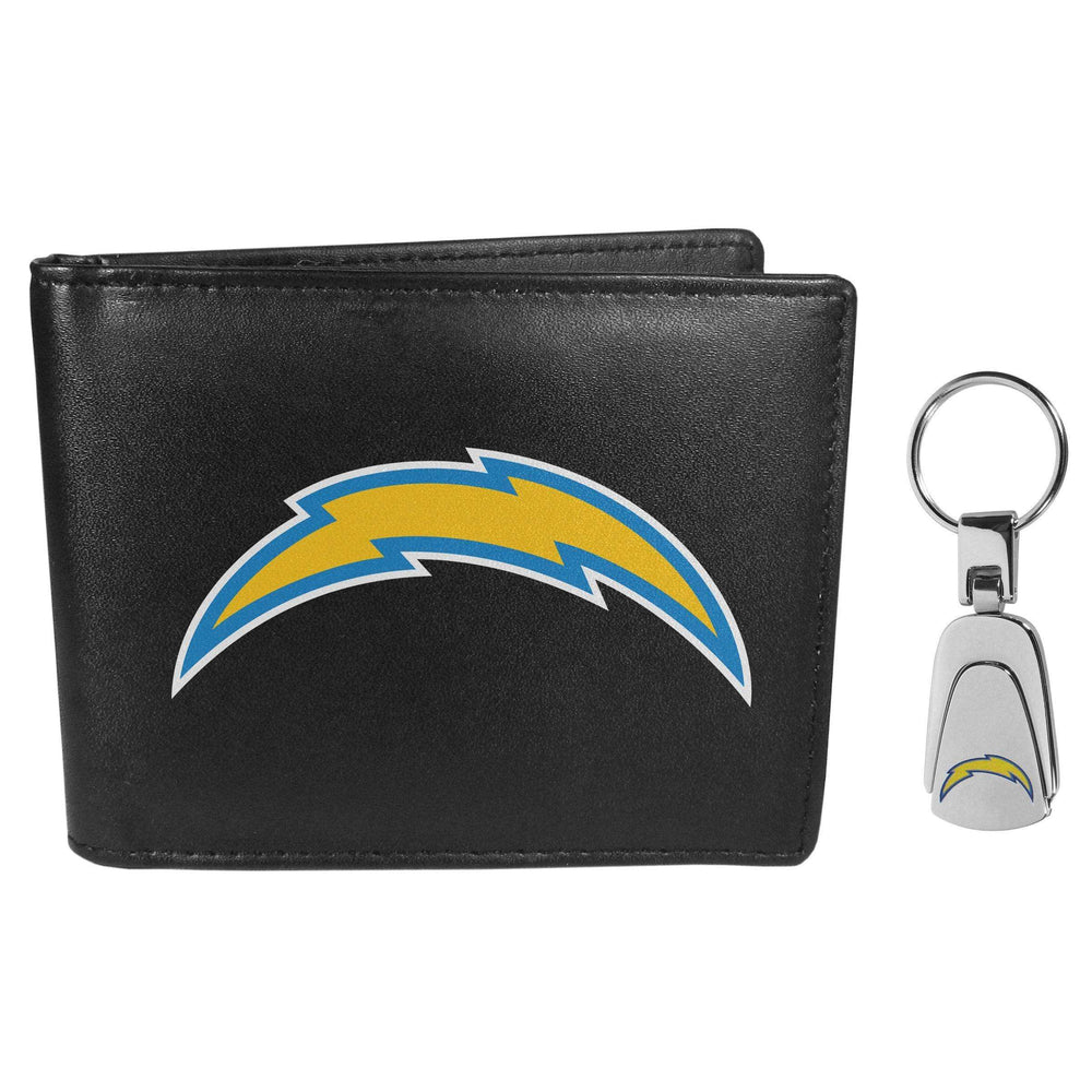 Sports fans do not have to sacrifice style with this classic bi-fold wallet that sports the Los Angeles Chargers extra large logo. This men's fashion accessory has a leather grain look and expert craftmanship for a quality wallet at a great price. The wallet features inner credit card slots, windowed ID slot and a large billfold pocket. Comes with a stylish steel teardrop key chain that features the team logo printed on the front and a high polish chrome finish on the back.