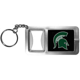 Never be without light with our Michigan St. Spartans flashlight keychain that features a handy bottle opener feature. This versatile key chain is perfect for camping and travel and is a great way to show off your team pride!