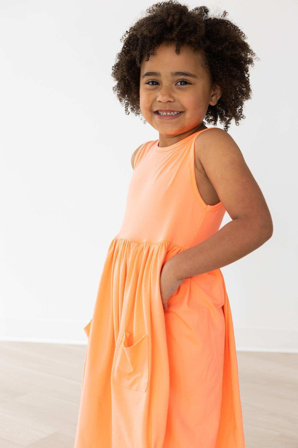 The perfect dress for school, special occasions, and everyday play! Designed by a mom and a dad. Mom wanted something twirly, comfortable and easy to wash. Dad wanted something easy to get on his chubby, big headed toddler. Designed with a scoop back for quick on and off, and higher neckline for modesty. Pair with Twirl Shorts or layer with a Cardigan for the perfect everyday outfit.