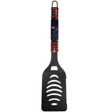 Our tailgater spatula really catches your eye with team color and chrome accents and New England Patriots digital graphics. The 430 grade stainless steel spatula is a tough, heavy-duty tool that will last through years of tailgating fun. The spatula features a bottle opener and sharp serrated edge and comes with a matte black finish.