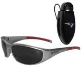 A must have for game day and a perfect everday accessory for an avid New England Patriots fan. Our popular wrap sunglasses are as fashionable as they are durable. The team colored frames have flex hinges for comfort and durability with team colored rubber sports grips. Maximum UVA/UVB protection. Keep these great sunglasses safe from scratches, breaking and getting lost with our handy visor clip. The 3 inch clip has a push button to open at the top and snaps closed to secure your glasses. The wire back easily slips on to your car visor but can also be used on backpacks and purses to make sure your eyewear is easily accessible and safe from damage.