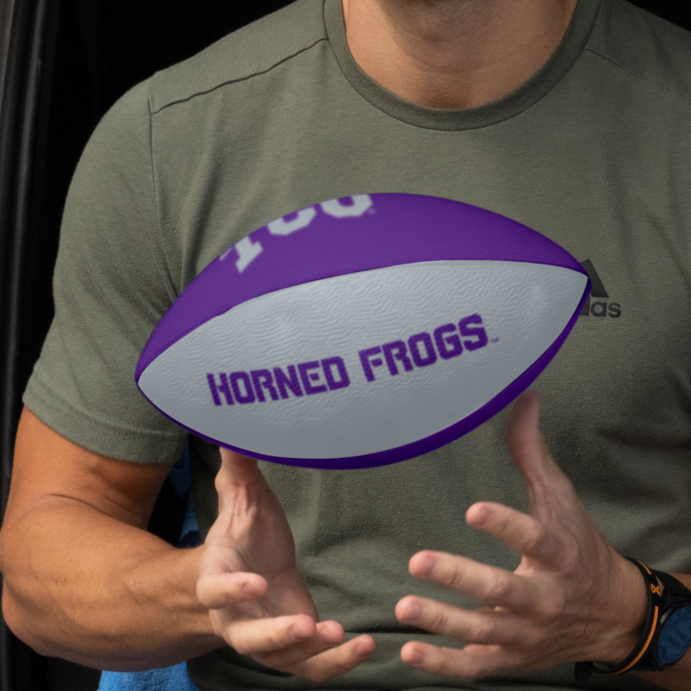 From end zone to end zone, this Junior Rubber Football is designed to stand out. Features alternating team color panels with unique designs and official team logos on the top two panels. Made with rubber molded laces for strong grip and throwing accuracy.