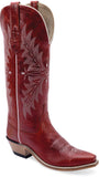 All over leather with 14" shaft, fully leather lined, reinforced shank, 6 – row fancy stitch, hand corded medallion, cushion leather insole, cowboy heel, snip toe and leather outsole.