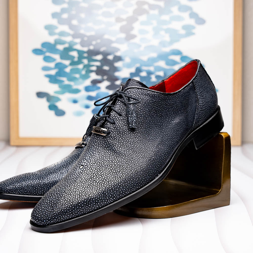 The PANNUCI is our exotic take on a classic dress oxford, featuring tasseled laces, fully wrapped genuine stingray, and leather outsoles. Dress these up with your favorite jeans or slacks for a stand out look.
