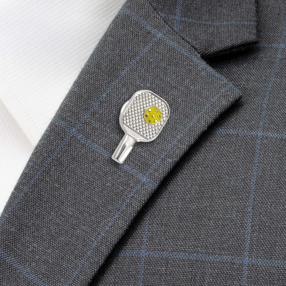 This silver-tone lapel pin features a textured pickleball paddle and bright yellow ball, capturing the energy of the game that’s sweeping the nation. Whether you're rallying on the court or just obsessed with the sport (like the rest of the country), this playful piece is a subtle shoutout to your favorite pastime.