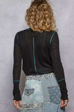 This top is designed with a round neck and full sleeves, offering a classic and versatile style. The regular fit ensures a comfortable silhouette for everyday wear. Made from a mix of thermal and cut and sew knit fabric, it provides warmth and texture. The overlock seam detail adds a touch of uniqueness to the garment. The pointed solid pattern gives a subtle yet stylish element to the overall design.