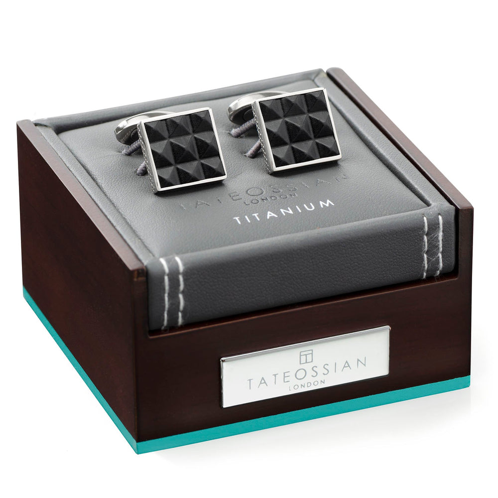 A simplistic and classic cufflink that incorporates textured, three-dimensional Italian leather, skillfully contained within a titanium case. An exciting and new cufflink design.