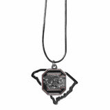 Get in on the trend! State themes are a trend that just keeps getting more popular and these necklaces take the state style and give it a sporty twist with a S. Carolina Gamecocks added to the state outline charm. The come on a snake chain that is 22 inches long. Officially licensed College product Licensee: Siskiyou Buckle Necklace comes with 2 charms Metal outline state charm Snake chain is 16 inches with 2 inch extender High polish S. Carolina Gamecocks charm