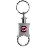 This high-quality key chain is both fashionable and functional. The key chain features to key rings and one of them detaches easily for valet use so you do not have to risk giving out all of your keys. The beautiful brushed metal finish features the S. Carolina Gamecocks logo expertly printed on front.