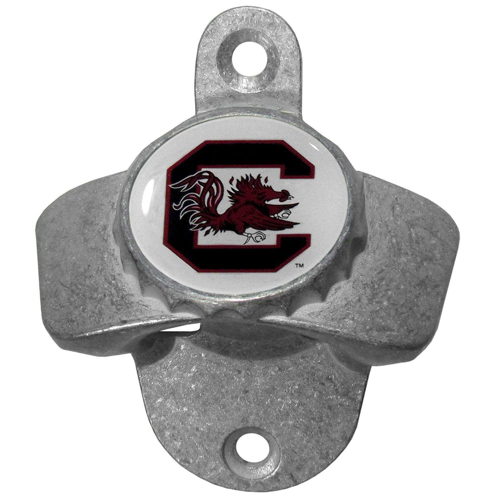 Our S. Carolina Gamecocks sturdy wall mounted bottle opener is a great addition for your deck, garage or bar to show off your team spirit. Officially licensed College product Licensee: Siskiyou Buckle Mounts easily to decks, bars or countertops Sturdy full metal construction No more searching for a bottle opener S. Carolina Gamecocks domed emblem