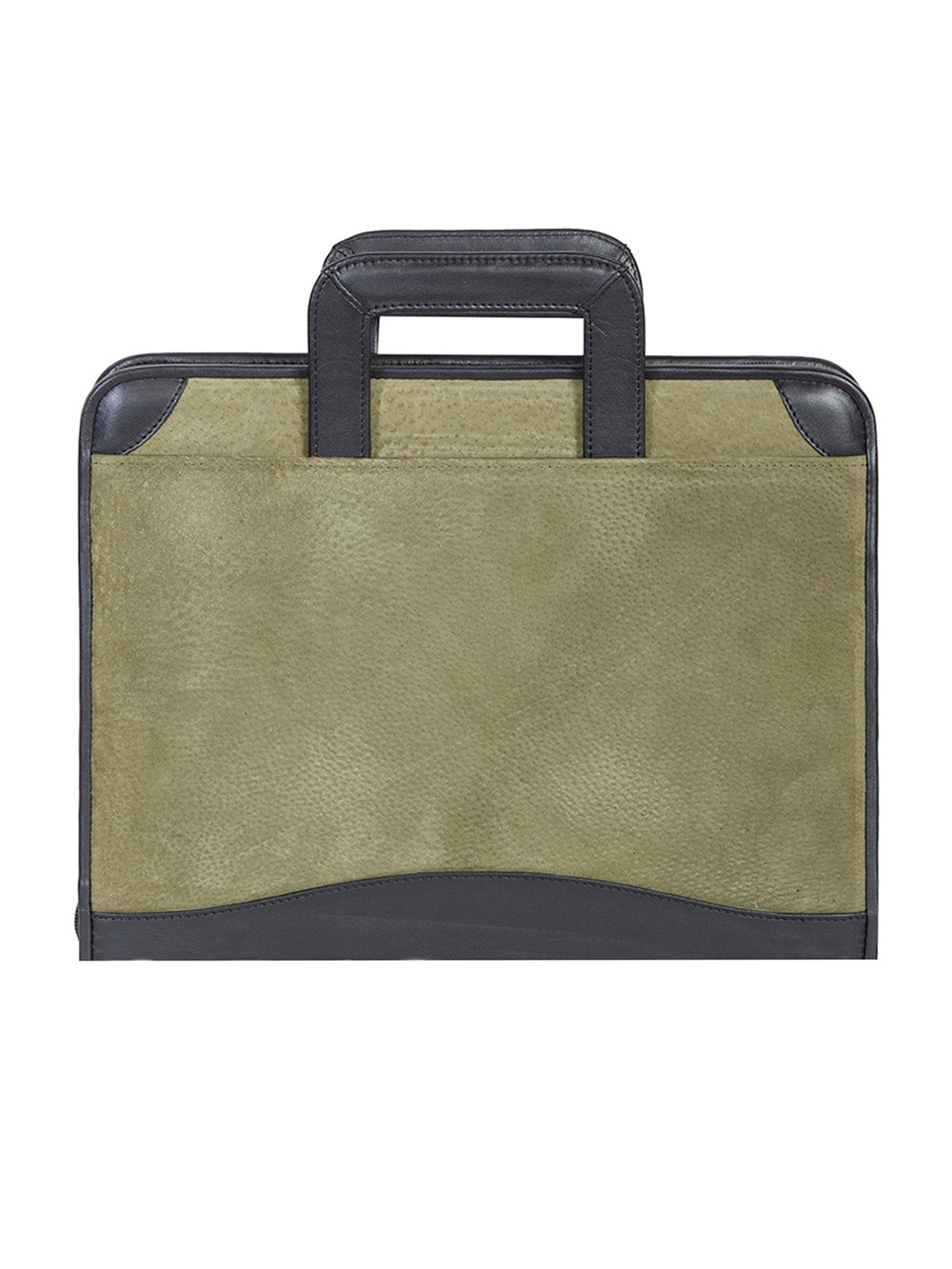 Leather 3 ring zip binder w/drop handles. 1.25 INCH rings inside organizer. 2 outside pockets. 8.5 INCH x 11 INCH monthly planner. Writing pad. 5 division side tabs. Scully pen shoulder strap. Import.