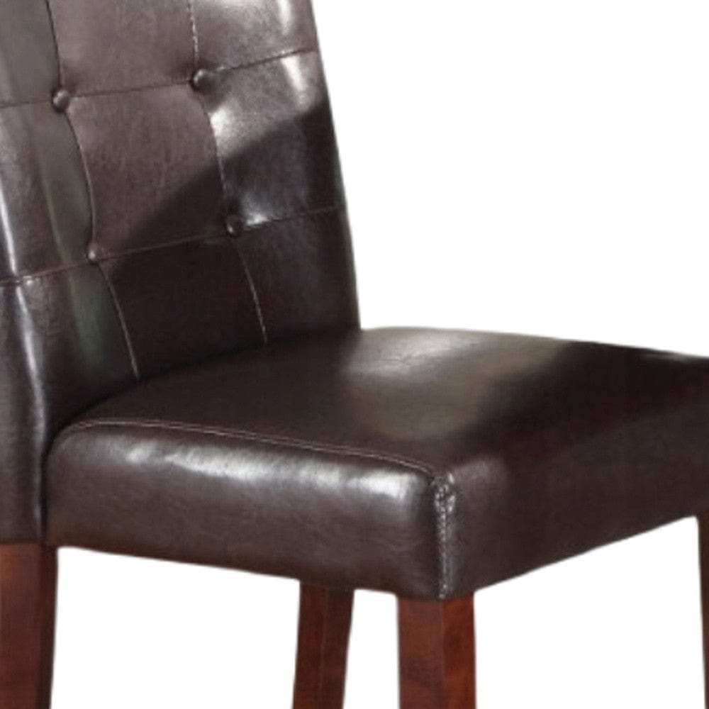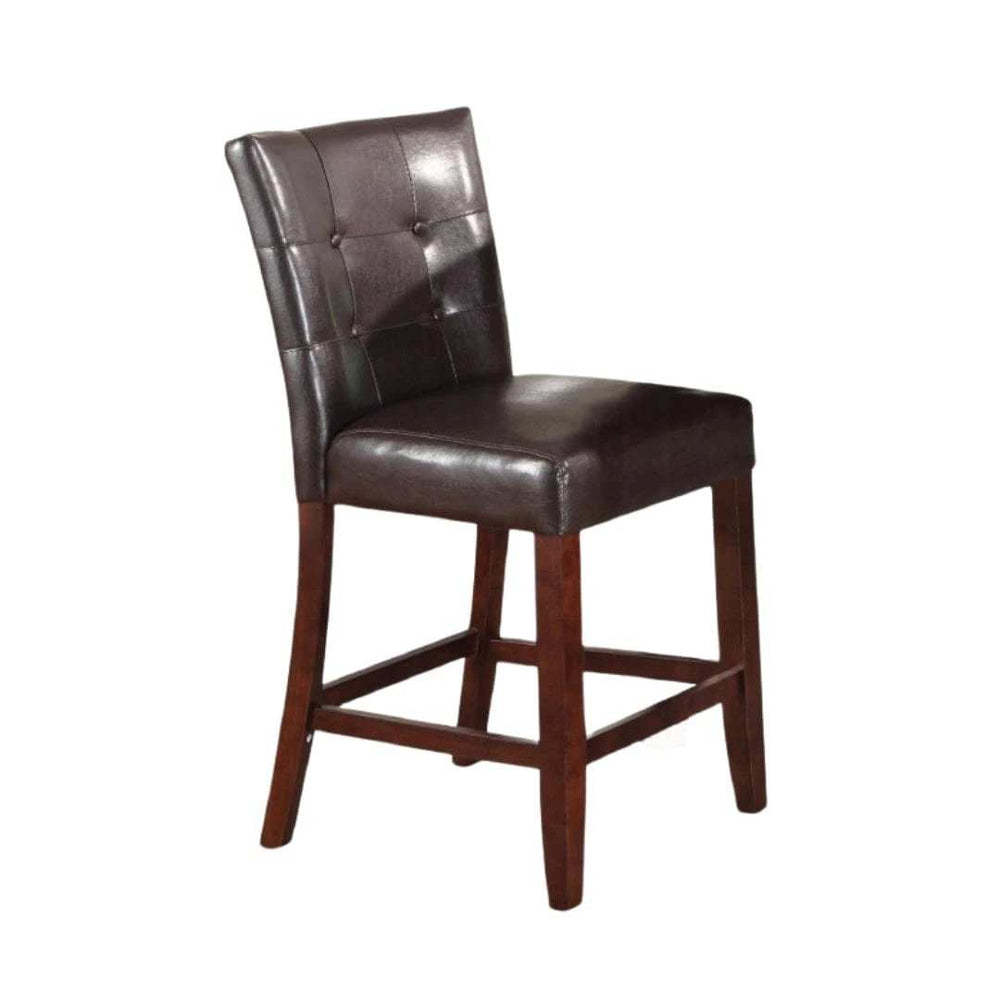 Comfort and design come together nicely in this set of two espresso and brown solid and manufactured wood counter height bar chairs. Not only good looking and stylish, this chair features a square shaped seat and a full back for the ultimate in comfort and enjoyment. Designed with a footrest for comfort and convenience. 40-inch H x 20-inch W x 24-inch D