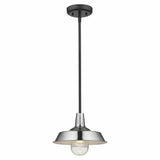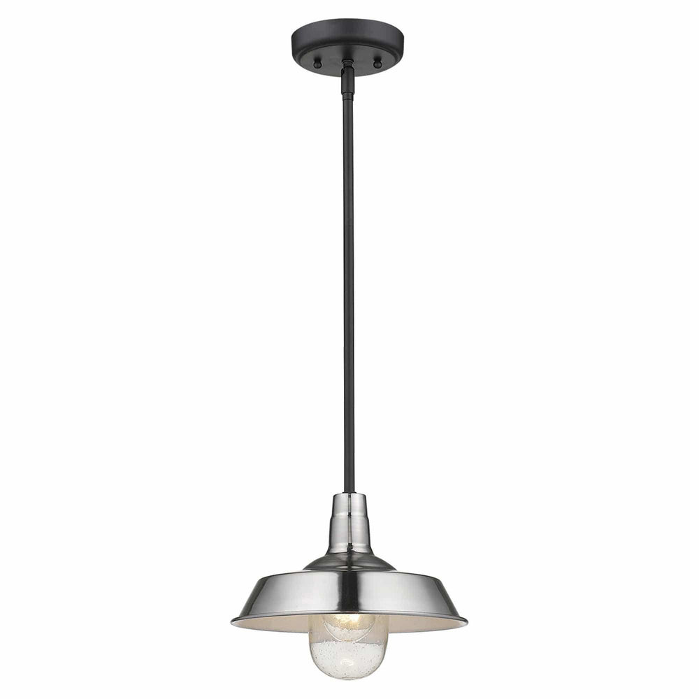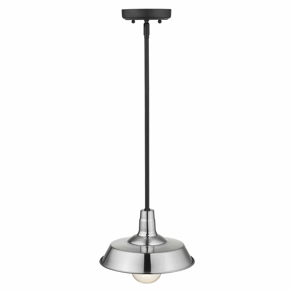With this Silver Shallow Plate Adjustable Pendant Light you can add more brightness and style to any space inside or outside of your home. The ceiling bracket has a simple circular design out of which there is a long and thin rod coming out. This rod attaches to the main light shape. The main light shape has a thin cylindrical top and a shallow plate shaped body. The light globe hangs below the shade and adds a touch of traditional design to the overall look. The wall bracket and rod are in a matte black color while the light shade is in a silver color. The contrast of the colors and finishes will look great in any space and elevate the feel and look of it. You can also adjust the height and length as per your needs. 8" H x 10.25" W x 10.25" D
