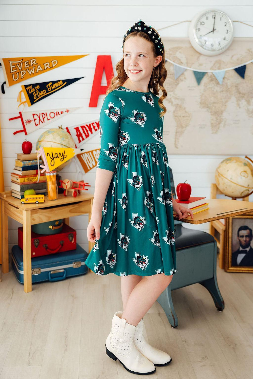 Show your Dragon school pride in style! The perfect dress for young Dragons to cheer on their team. Great for game day, spirit day, and everyday play! Designed by a Dragon family, for their daughters. Mix & Match our Southlake Carroll Dragon collection for sisters, cousins, or BFFs.