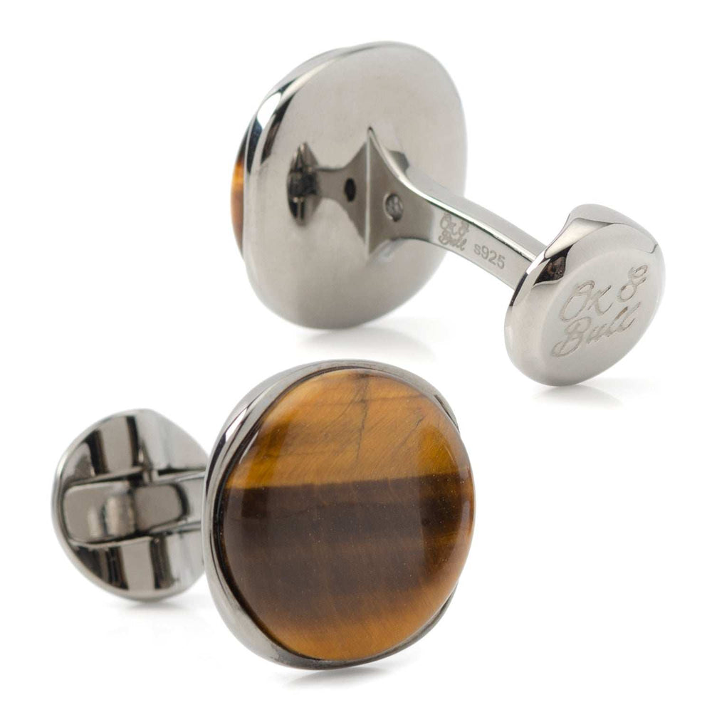 Smooth, shiny Tiger's Eye has been cut into a cushioned disc and surrounded gunmetal plated Sterling Silver to create this set of elegant cufflinks. These heirloom-quality cufflinks add a brilliant shimmer of elegance to any outfit while remaining masculine and dignified. The expert craftsmanship of our Sterling Silver cufflinks ensures long-lasting durability and a classic look that is sure to never go out of style.