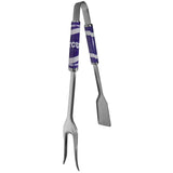 The perfect space saving tool! This stainless steel grilling tool is a spatula, tongs and fork all in one high-quality BBQ tool. The tool features bright TCU Horned Frogs graphics.
