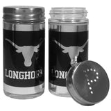 No tailgate party is complete without your Texas Longhorns salt & pepper shakers featuring black and chrome team graphics. The glass shakers are 3.75 inches tall and the screw top lids have holes that spell out P and S. These team shakers are a great grill accessory whether you are barbecuing on the patio, picnicing or having a game day party.