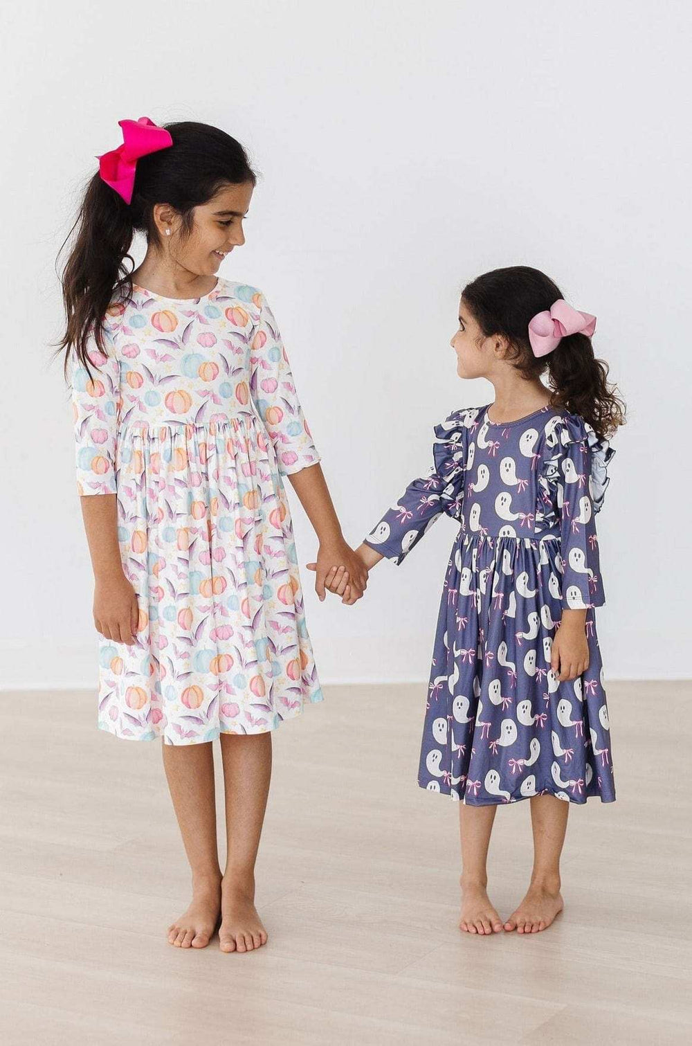 The perfect dress for Spooky Season! Designed by a mom and a dad. Mom wanted something twirly, comfortable and easy to wash. Dad wanted something easy to get on his chubby, big headed toddler. Designed with a scoop back for quick on and off, and higher neckline for modesty. Pair with Twirl Shorts or Leggings for the perfect everyday outfit.