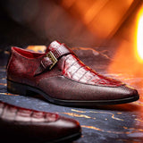 The TOLUCA is our genuine crocodile and lizard dress monk strap featuring chrome scale textured buckle, full leather outsoles, and a polished hand-finish. Dress these up with your favorite jeans or slacks for a stunning look.