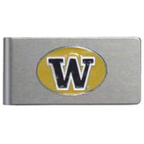 Our brushed metal money clip has classic style and functionality. The attractive clip features a metal Washington Huskies emblem with expertly enameled detail