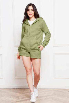 Zip Up Drawstring Hoodie and Shorts Set - Trendsi - Flyclothing LLC